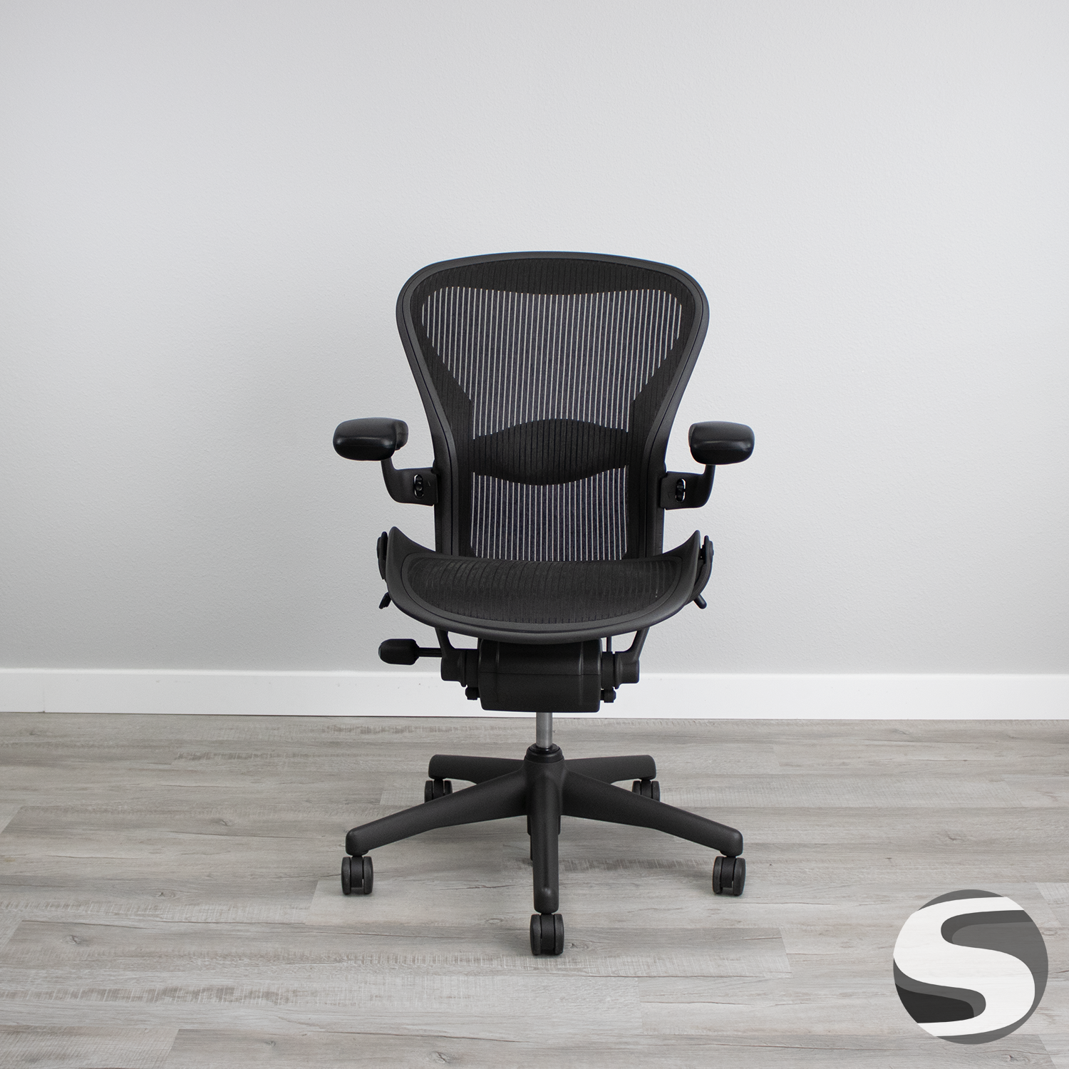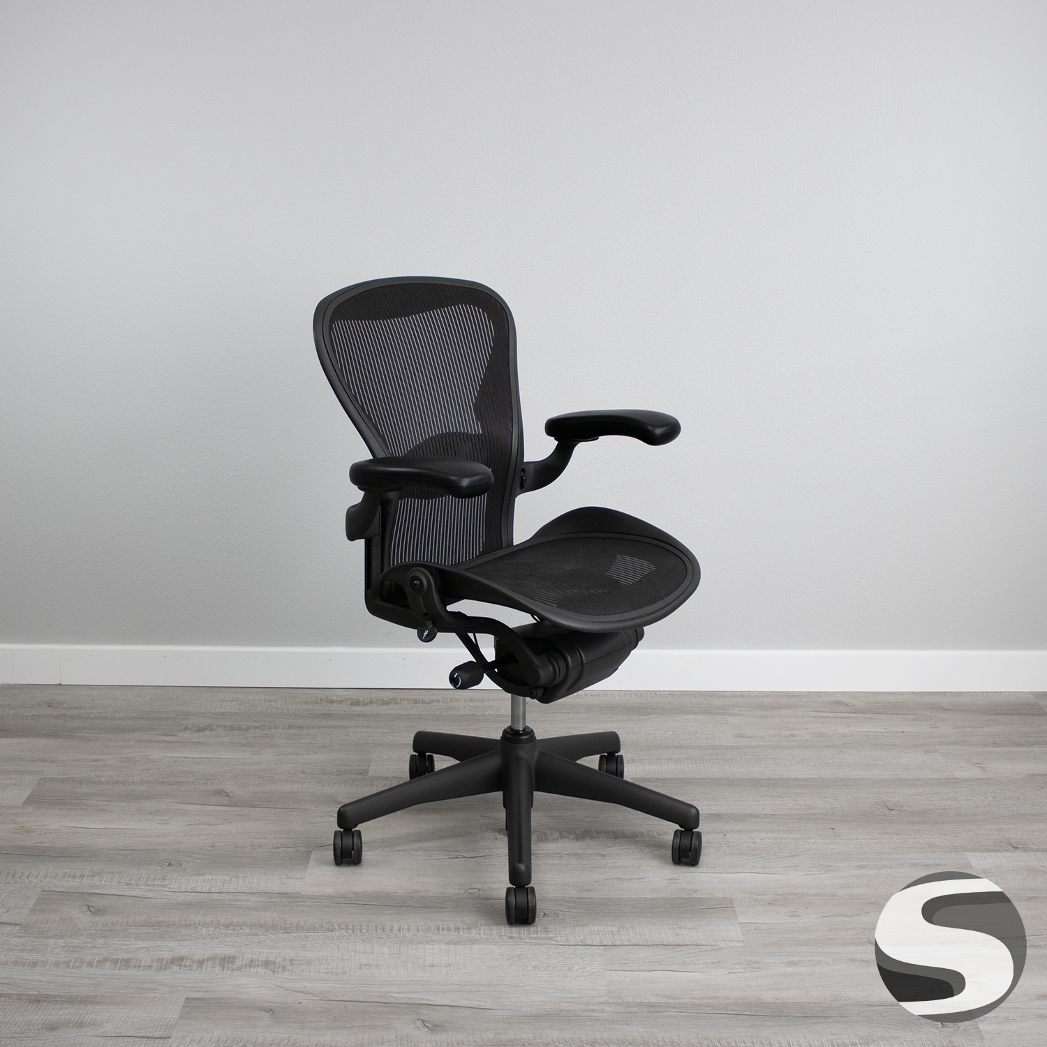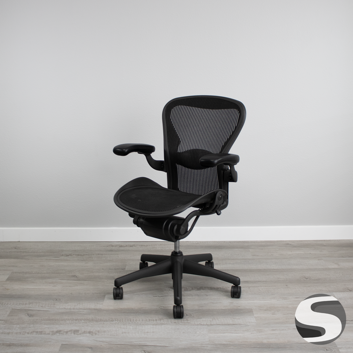 The updated Aeron chair by Herman Miller is ergonomic and designed for a wide range of body types. This is the medium version, also known as size B, with spin adjustment and includes select features. The launch of the Aeron was pioneering in the office furniture industry, and it still is. It is enhanced by incorporating ocean-bound plastic into its frame, all while maintaining its position as the ultimate office chair on the planet. What sets it apart is the shape of the back and seat that are oversized and allow for comfort in many different sitting positions because of this. Find out why everyone is raving about this chair at a price you can afford.