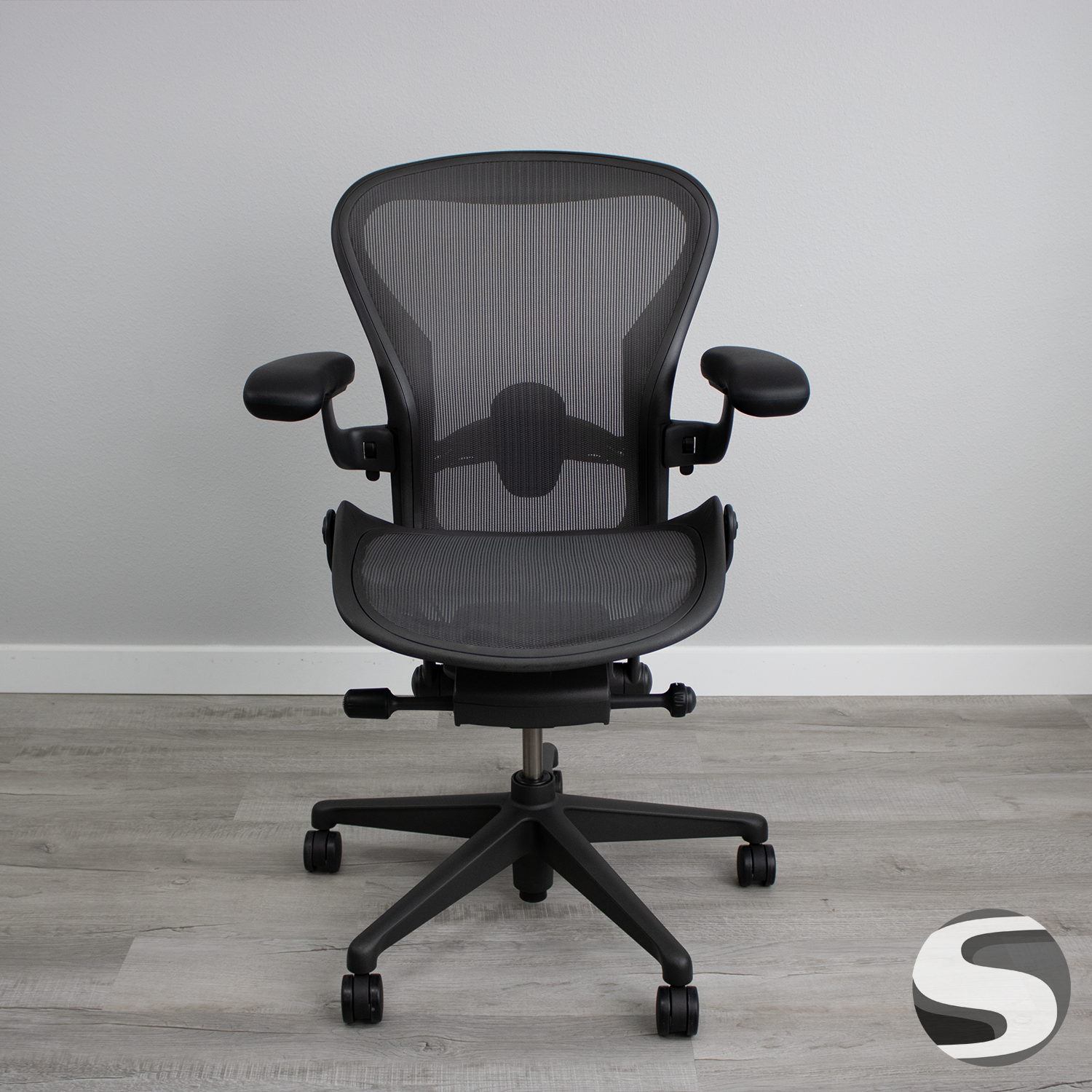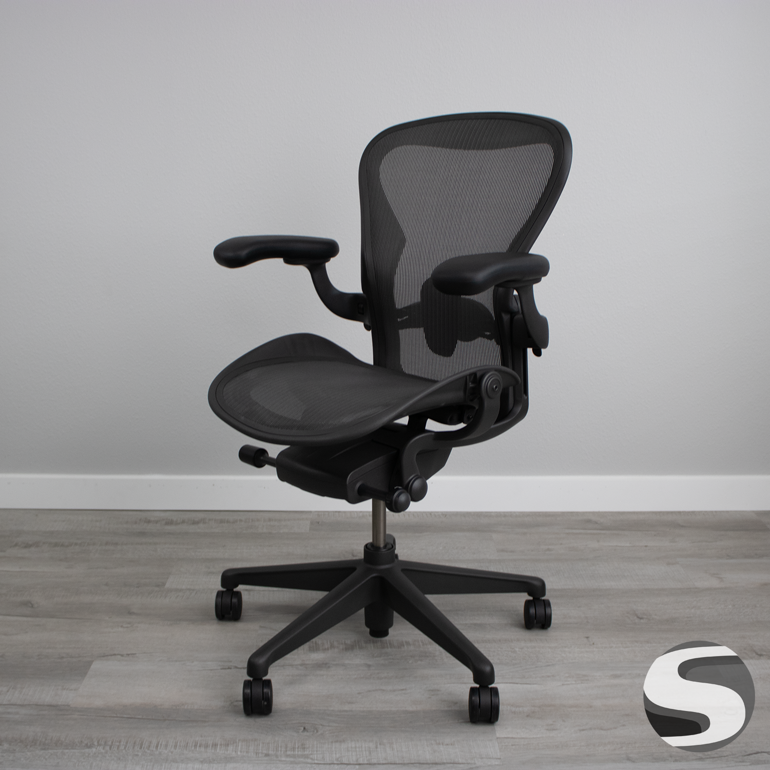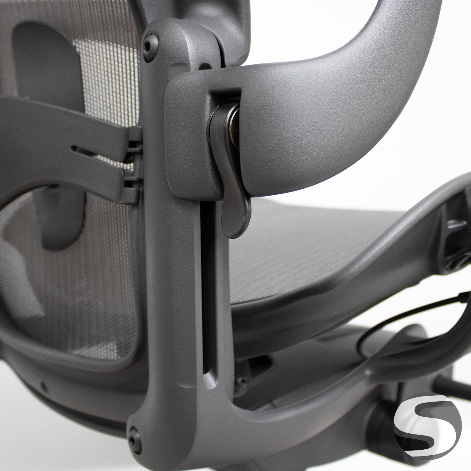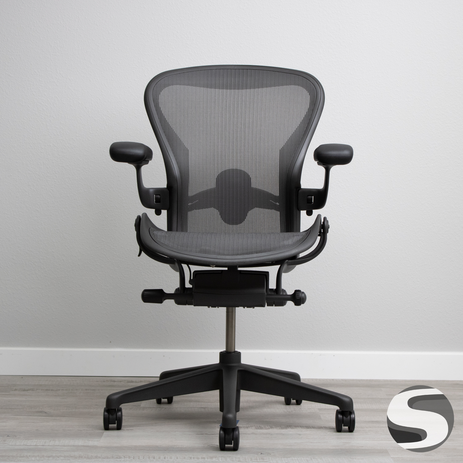 The updated Aeron chair by Herman Miller is ergonomic and designed for a wide range of body types. This is the medium version, also known as size B, with tab adjustable with posturefit and includes all available features. The Posturefit differs from the lumbar version of the Aeron by giving better flexibility with it’s support, whereas the Lumbar version is more rigid and gives better lower back support. This is the newest version of the Aeron. The Remastered Aeron has different height ranges, and the weight capacity has increased to 350 lbs. This version offers the groundbreaking Pellicle suspension material, which encourages an ideal sitting position – with an open chest, shoulders pulled back, and a slightly forward-tilted pelvis. Find out why everyone is raving about this chair at a price you can afford.