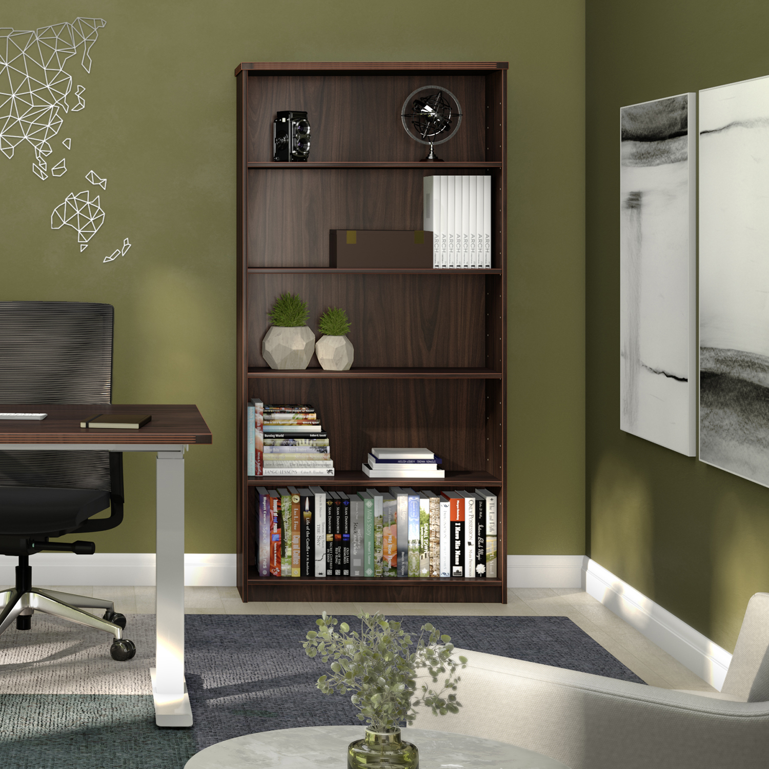 The Kai 5-Shelf Bookshelf by i5 Industries is a tall bookcase that combines style and practicality, perfect for showcasing decor or a large collection of books. Because it does not need anchored to a wall, it has flexibility to be used in a wide variety of spaces such as open plan office spaces, lobbies, libraries, private offices, home offices, executive offices, or reception spaces. Built with quality materials and designed for everyday use, this bookcase is reliable, durable, and beautiful.
