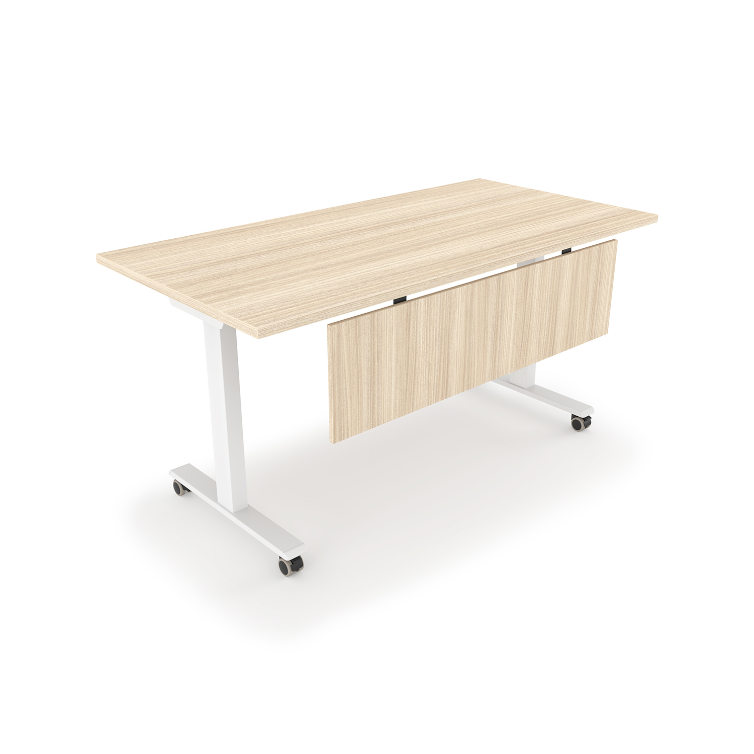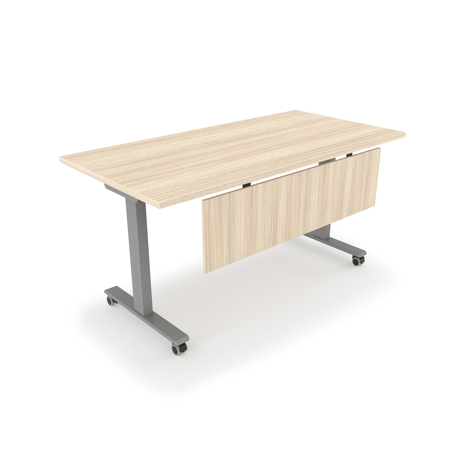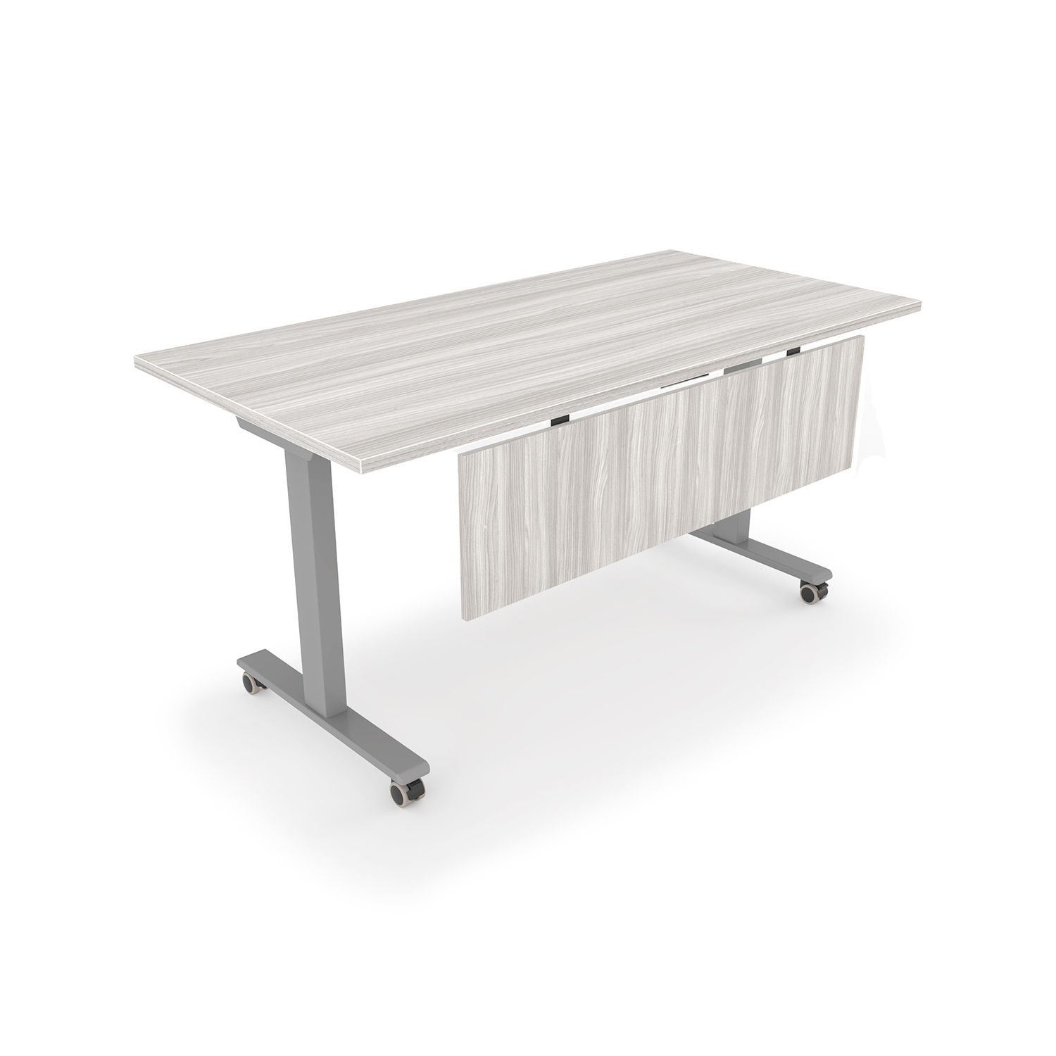 The i5 Industries Connect Training Table 24″ x 72″ is the ultimate solution for training centers, educational spaces, seminar rooms, and meeting areas. The Rayne laminate top is 1″ thick with 3mm edge banding in two coastal finish options. The matching Rayne modesty panel attaches to the bottom of the laminate top using hinged brackets that make it easy to store. This versatile table features a centered paddle that enables the top to flip up for storage at 90 degrees. Connects nest with other connects up to 10 deep. The table comes shipped with both glides and casters, allowing the table to be mobile for easy reconfiguration or stationary for long-term setups. Built from durable, commercial-quality materials, Connect Training Tables are made to withstand everyday use in fast-paced environments.