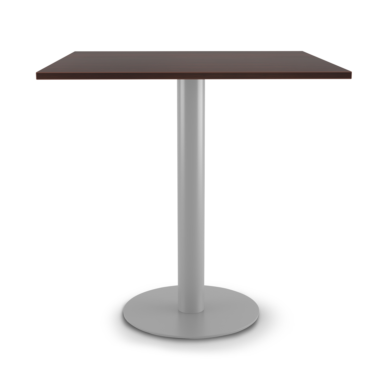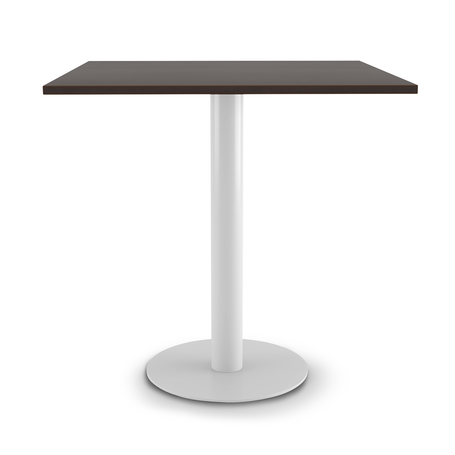 The i5 Industries Fusion Cafe Height Square Top Table with steel disc base and 36″ top. Cafe height 41″ height that supports cafe height stool seating options. Ideal for breakrooms, cafes, lounge spaces, private offices, corporate interiors, restaurants, pubs, and dining rooms. Available in a total of eight top finish options and three powder coated base options, giving up to 24 combinations to perfectly match your space. Made for commercial spaces and built for everyday use.