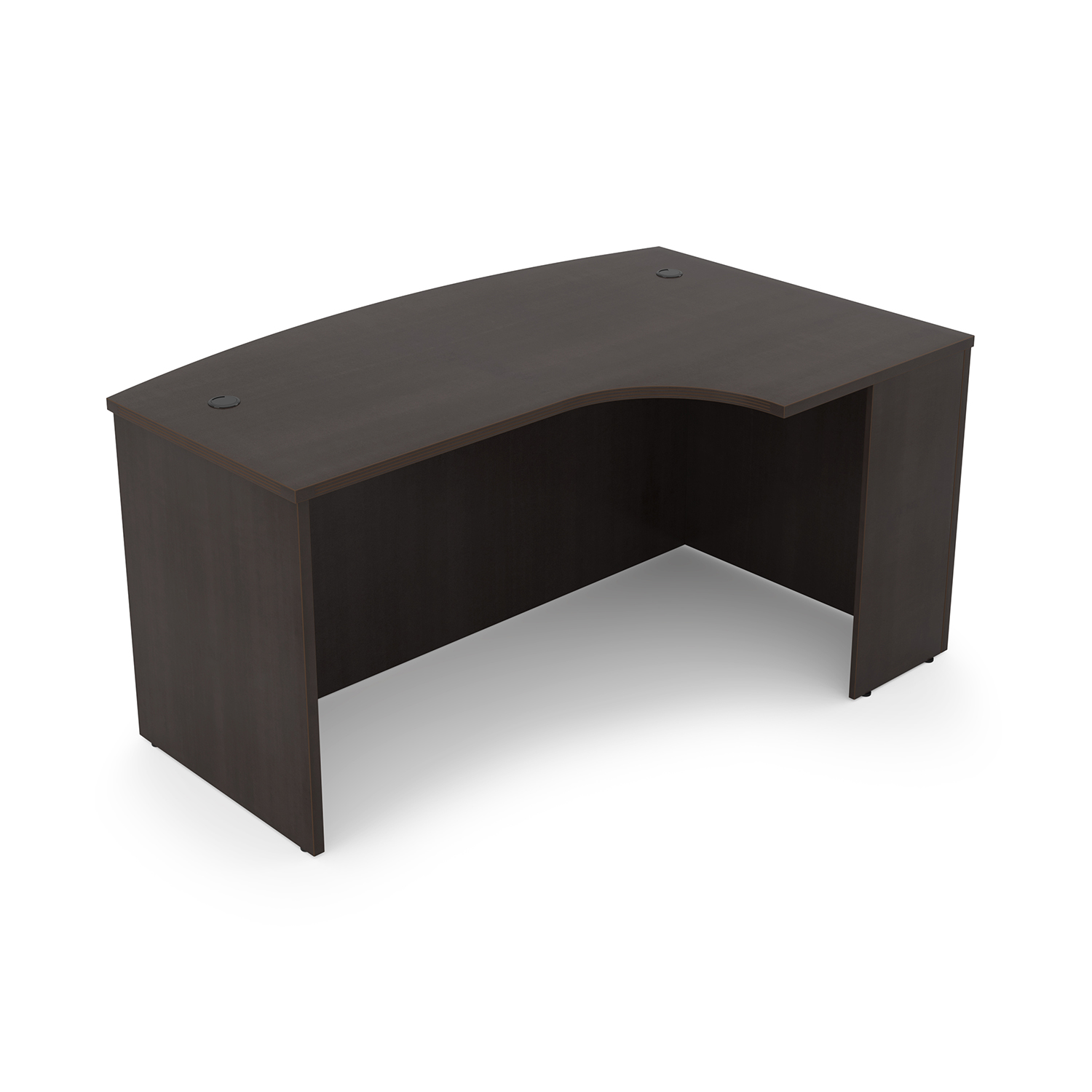 The i5 Industries Kai Bow Front Extended Corner Desk Shell 36″ x 71″ is ideal for right-handed spaces. Pair with a return to create L-Shaped workstations, or a bridge and credenza for U-shaped workstations. Durable yet stylish with fluted top edges and 3mm edge banding for durability and impact resistance. Sports a heavy duty cam and dowel system. Matching components are available so you can build your desk your way. Can hold one pedestal and a pencil drawer. Finished back for flexible placement and open plan spaces.
