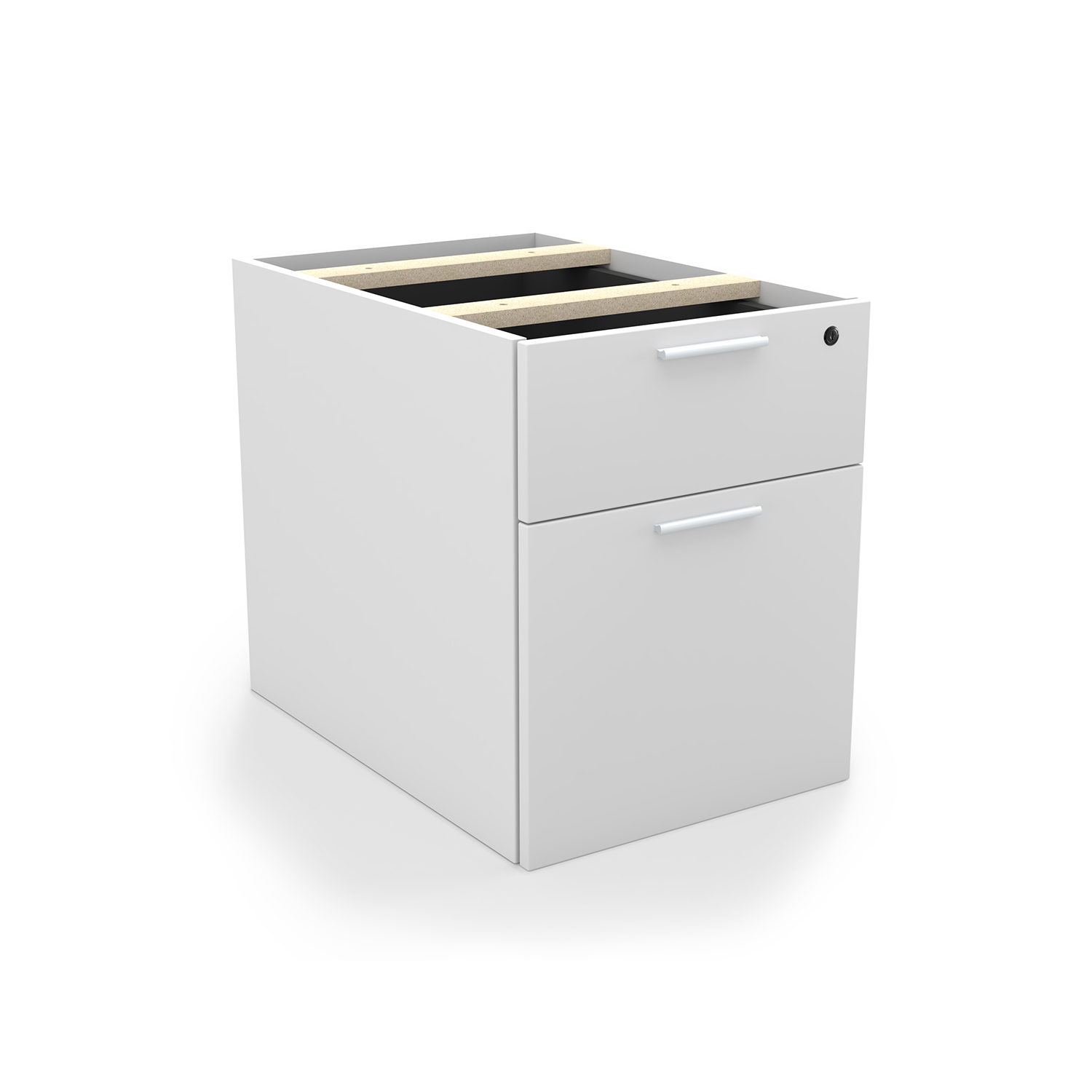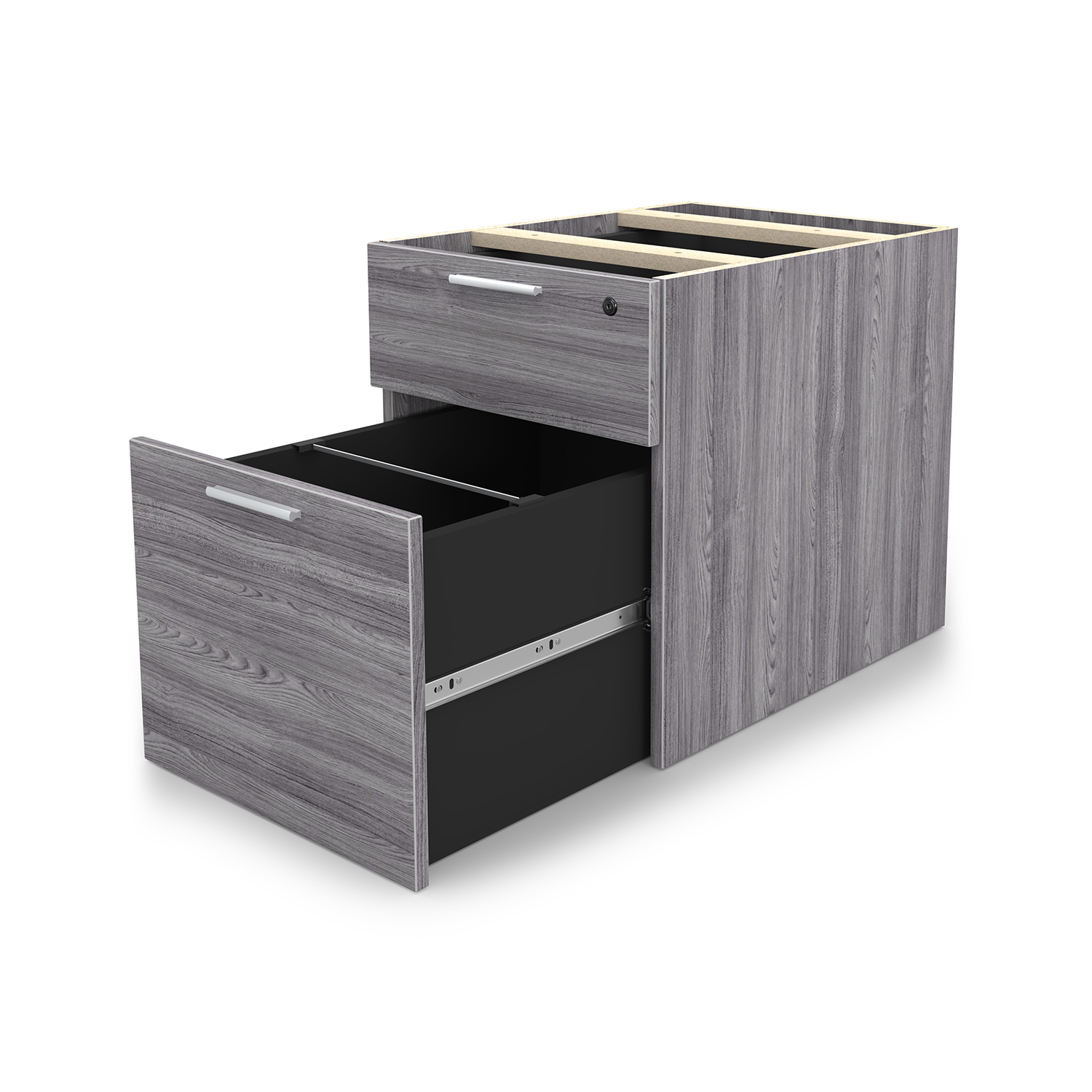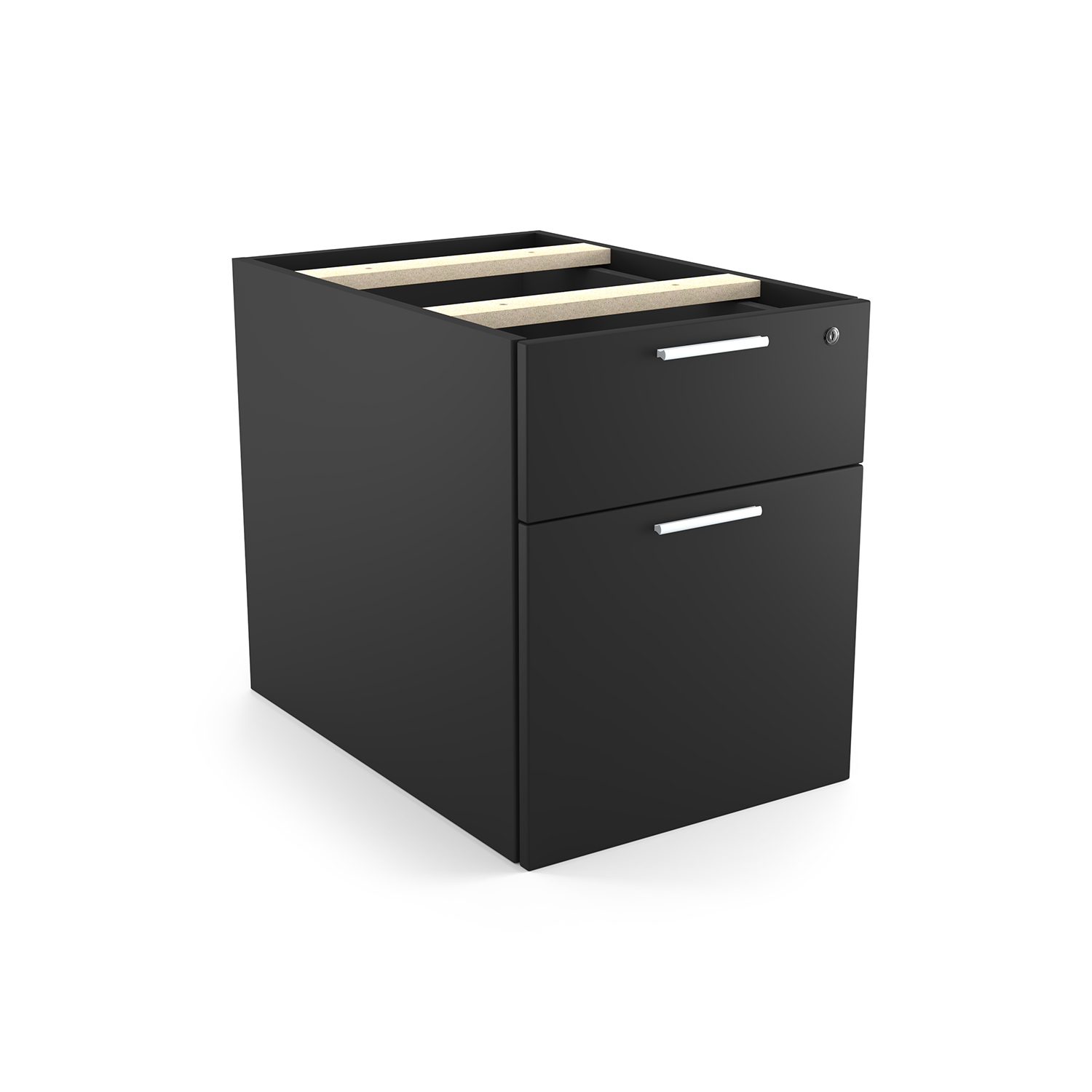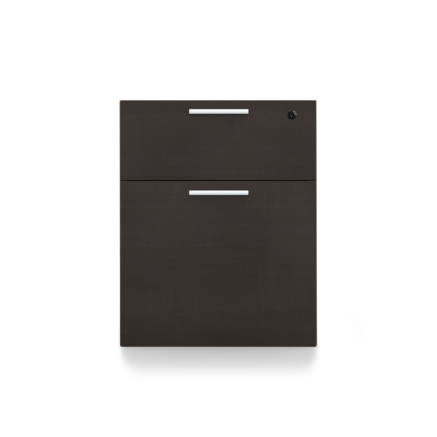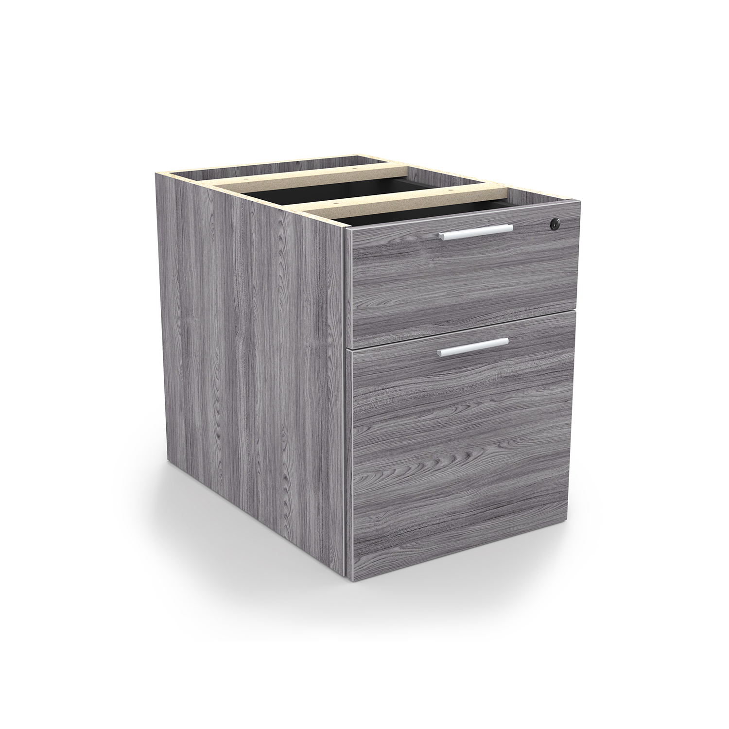 The i5 Industries Kai laminate box file pedestal is 24″ D with two file drawers. This is a suspended pedestal with hanging drawers that is compatible with all Kai desks and credenzas. All drawers are secured with a single lock and key. Features 3mm edge banding and silver nickel keyhole shaped handles. Matching components are available.