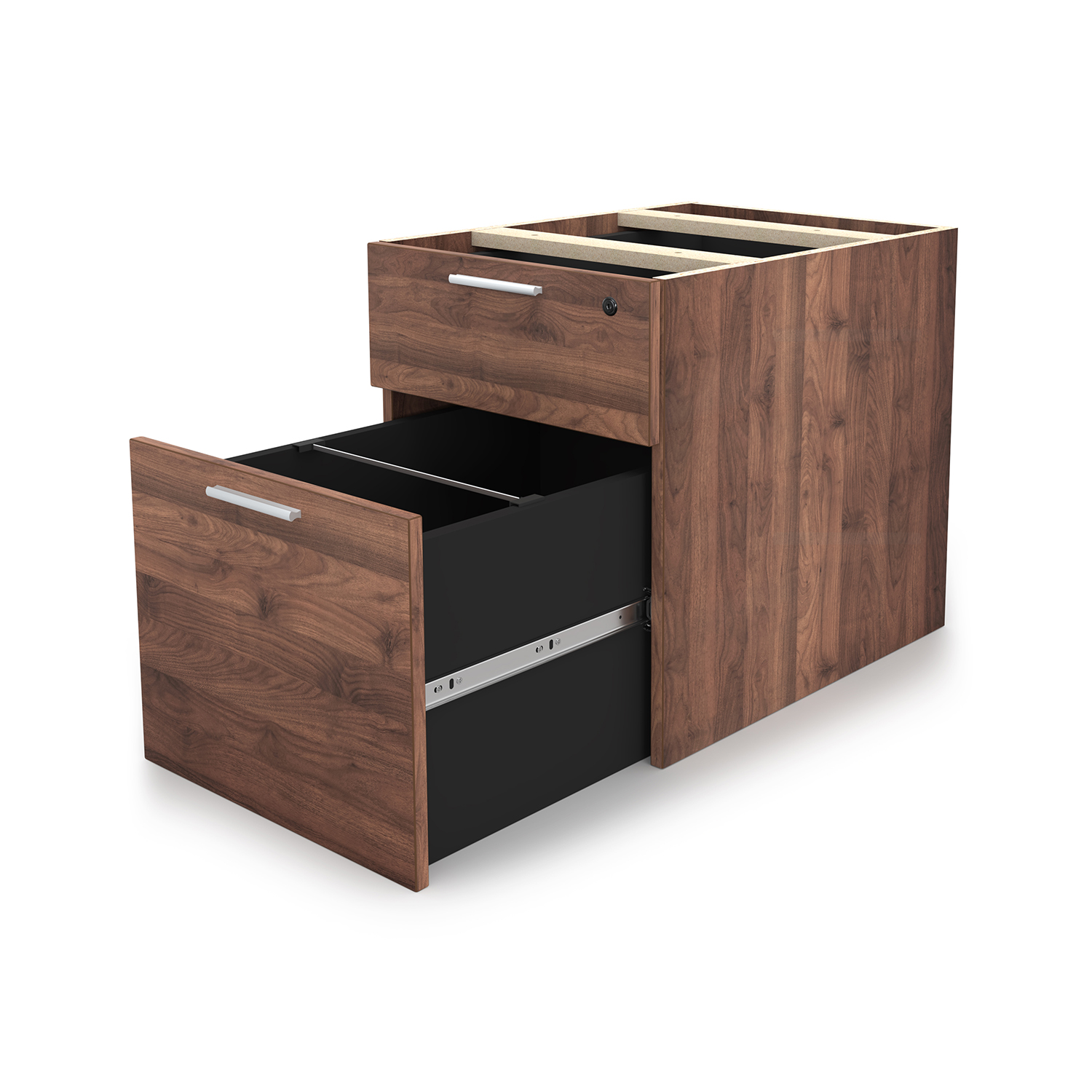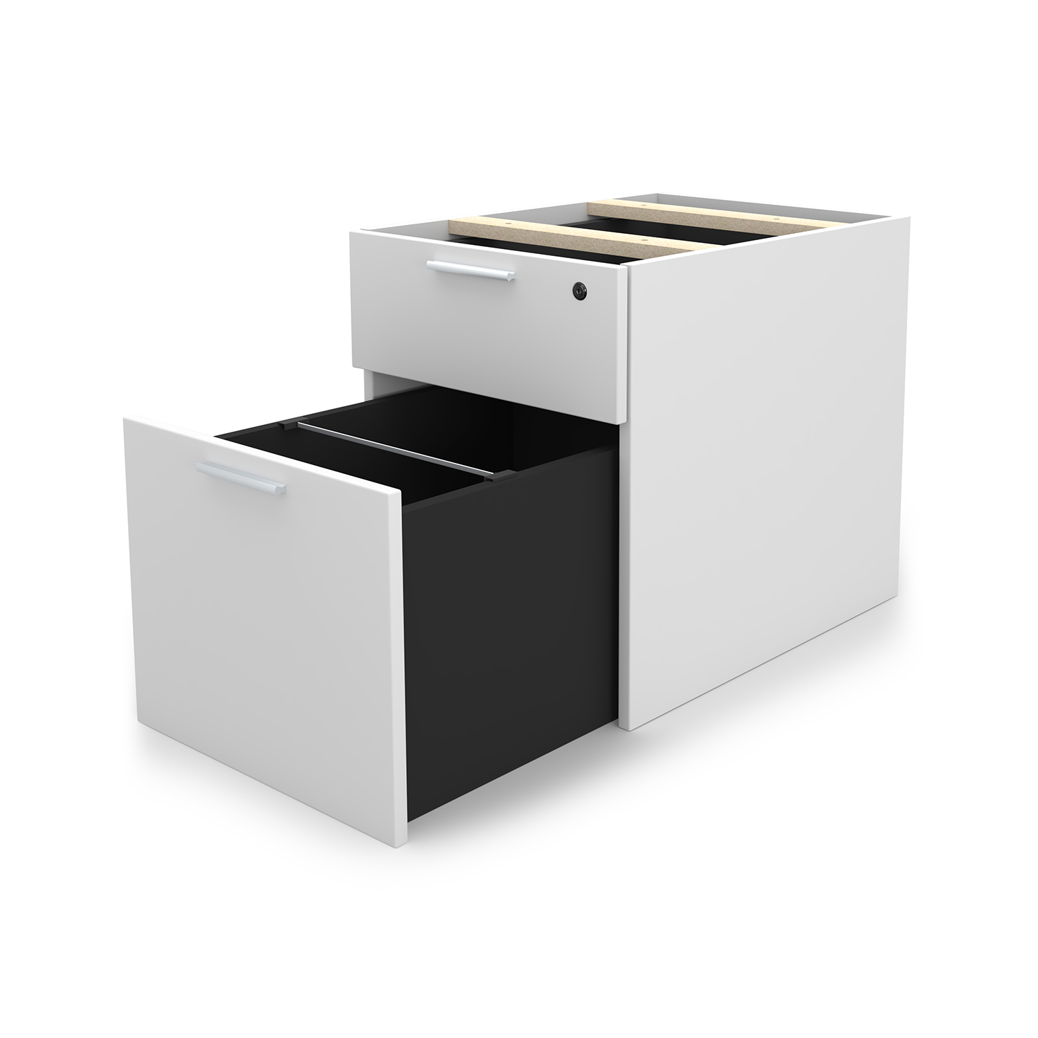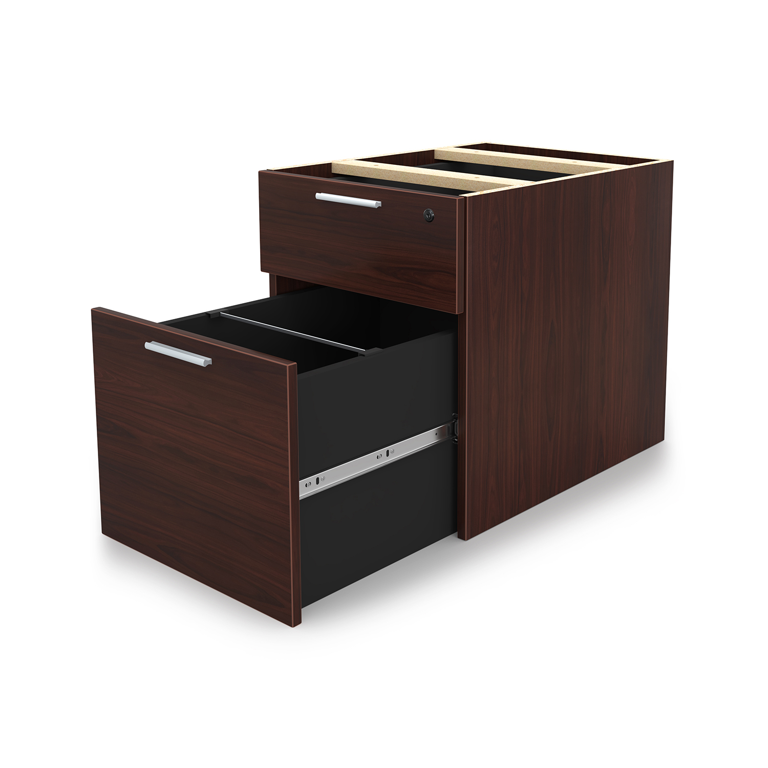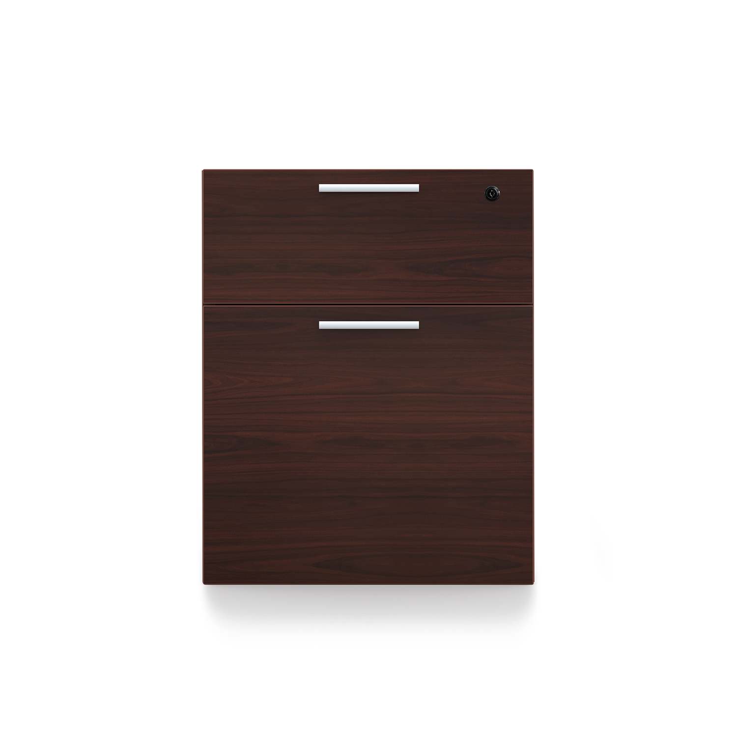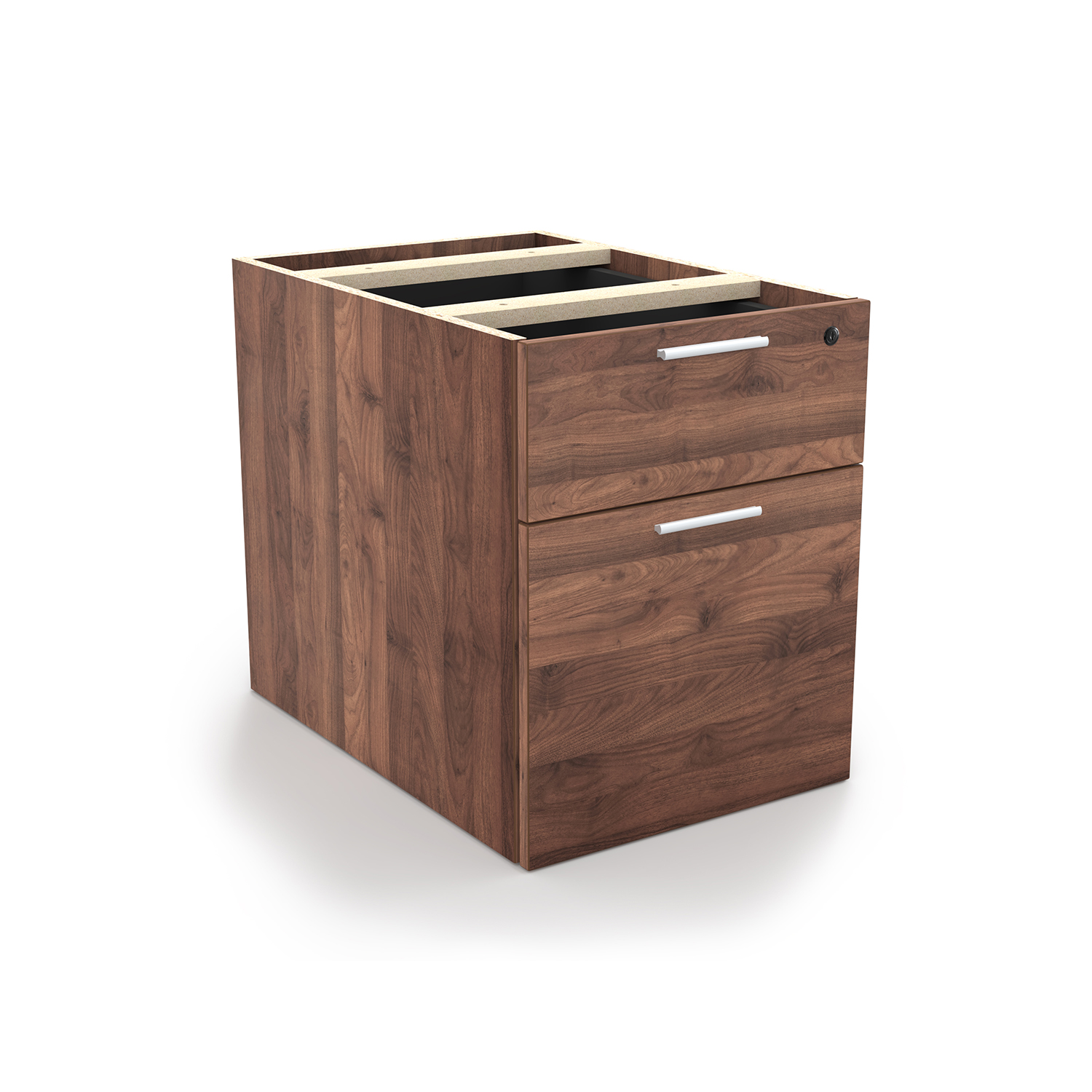 The i5 Industries Kai laminate box file pedestal is 24″ D with two file drawers. This is a suspended pedestal with hanging drawers that is compatible with all Kai desks and credenzas. All drawers are secured with a single lock and key. Features 3mm edge banding and silver nickel keyhole shaped handles. Matching components are available.