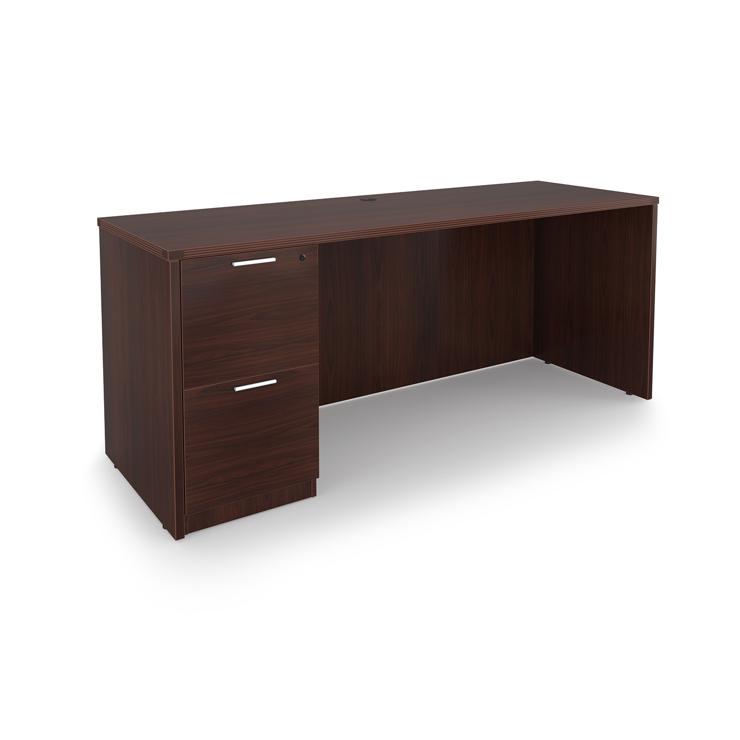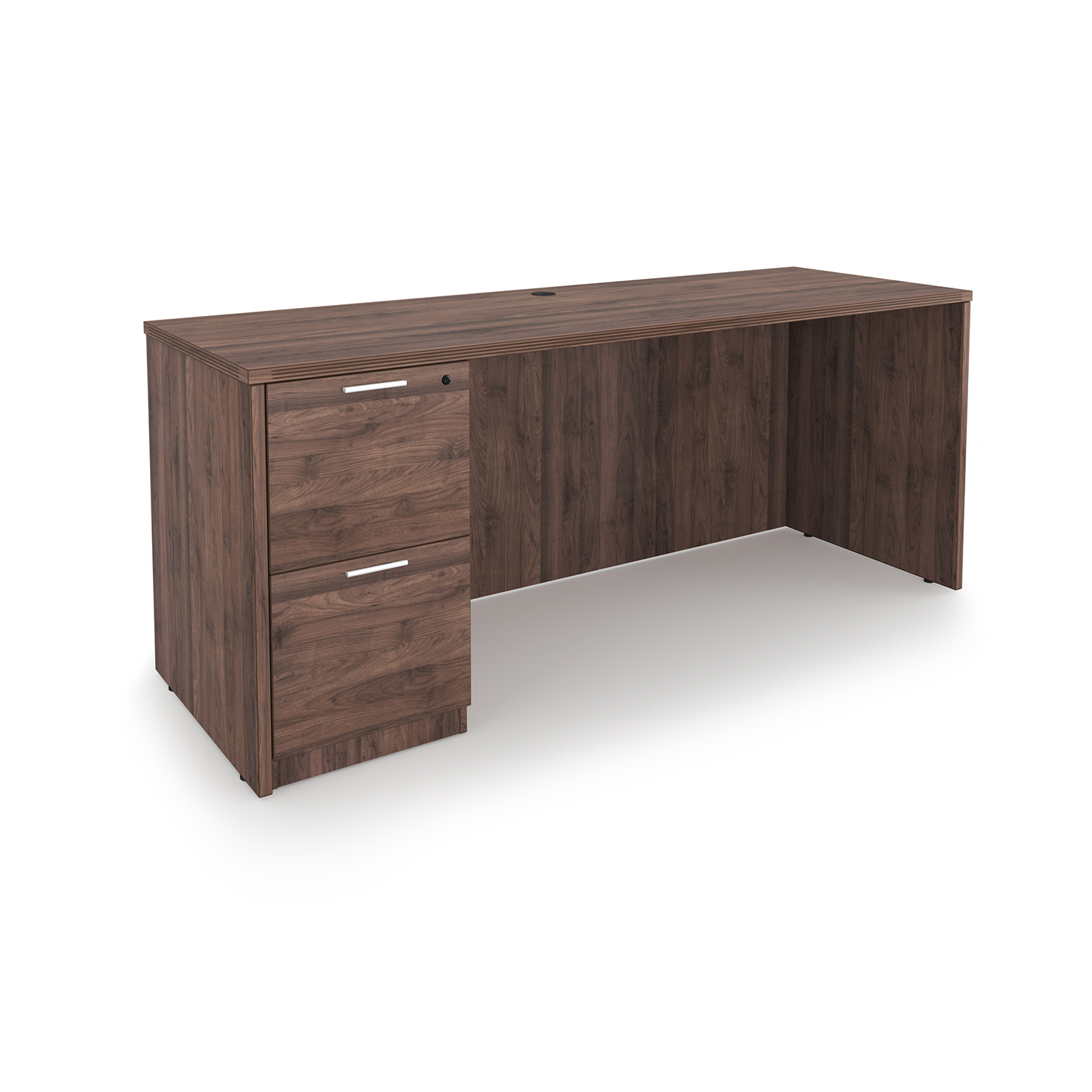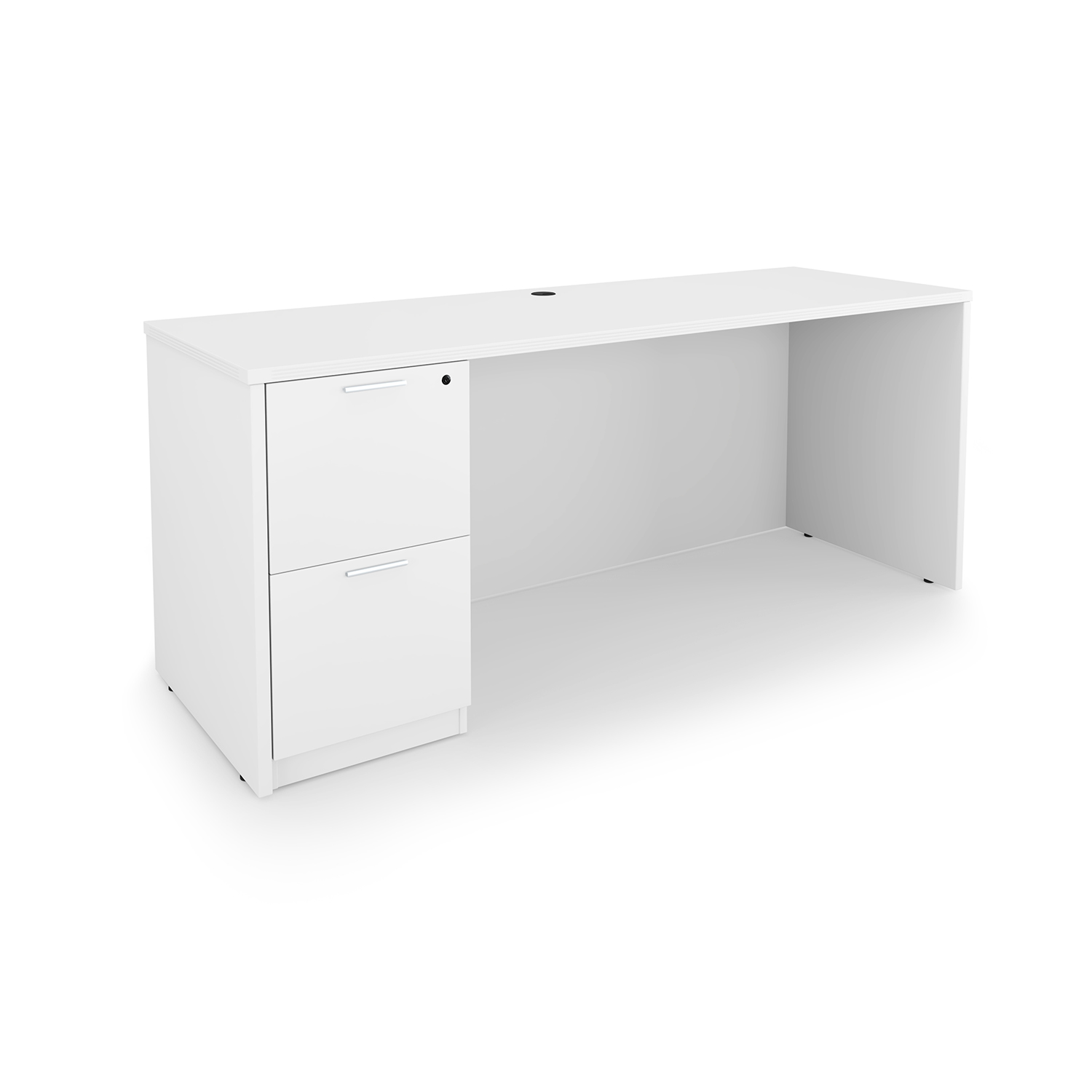 The i5 Industries Kai Credenza Desk with Full Pedestal with two filing drawers is 24″ x 66″. With it’s slim build, it’s perfect to use as a gaming desk, student desk, office desk, or as part of a larger workstation. Storage is secured with lock and key. Durable yet stylish with 3mm edge banding for durability and impact resistance. Sports a heavy duty cam and dowel system. Matching components are available. Finished back for flexible placement and open plan spaces.