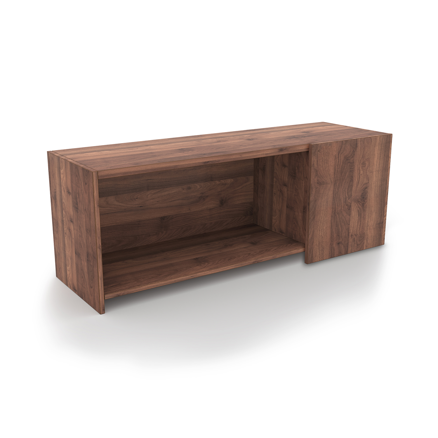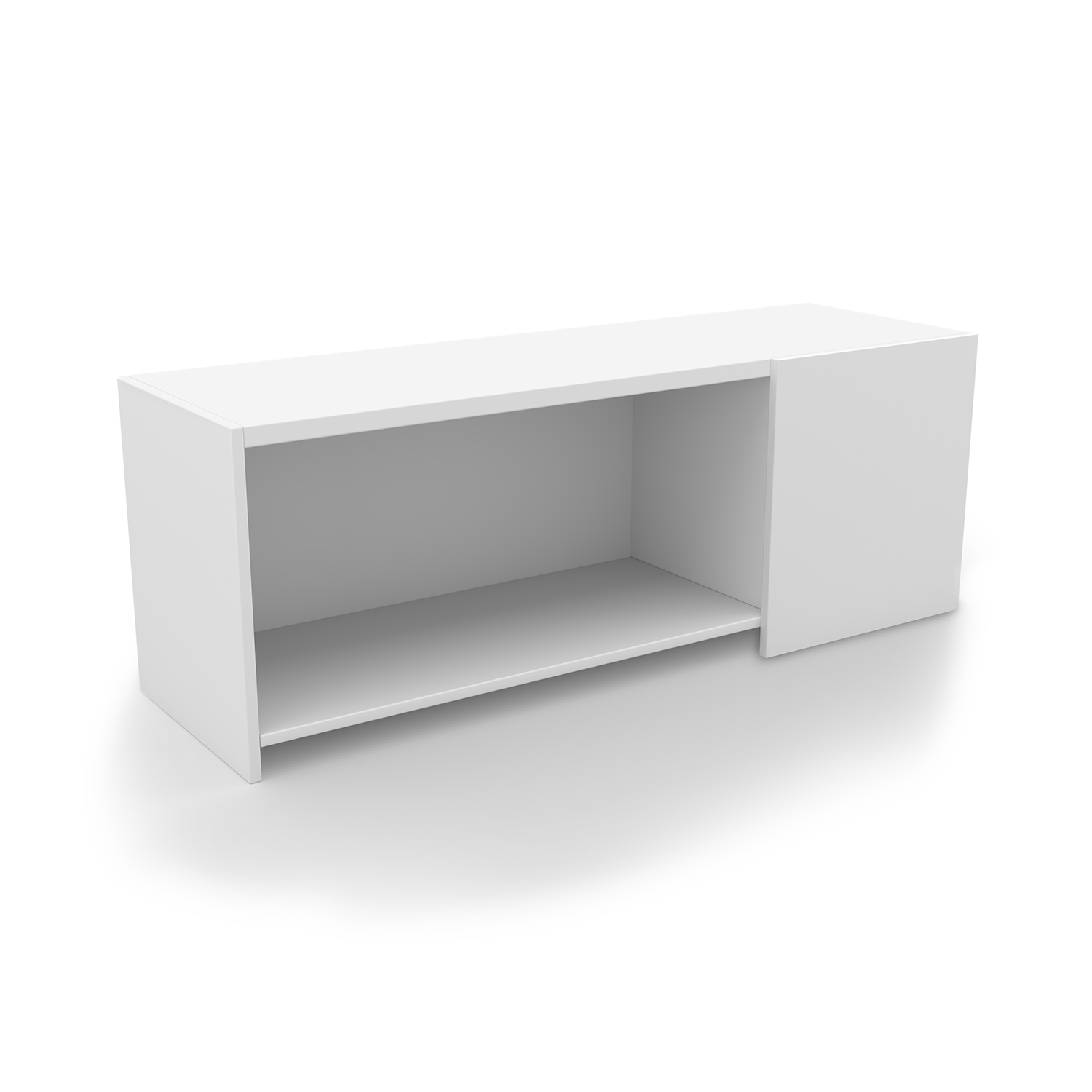The i5 Industries Kai laminate floating cabinets / wall-mounted hutch is 48″ wide and includes one laminate door. Use as a floating shelf, mount above a desk or credenza, or keep your books and files hidden. Glass is slightly frosted. Matching components are available.