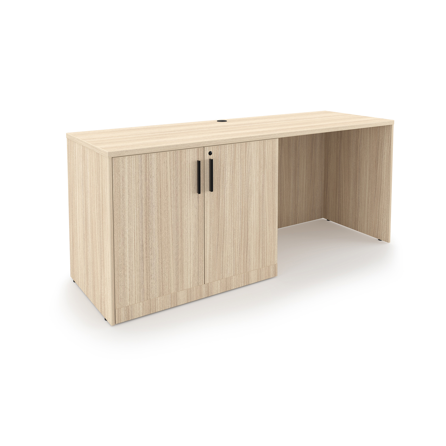 The i5 Industries Rayne Credenza Desk with Storage Cabinet is 24″ x 66″ and has an adjustable inner shelf. With it’s slim build, it’s perfect to use as a gaming desk, student desk, office desk, or as part of a larger workstation. Storage is secured with lock and key. Durable yet stylish with 3mm edge banding for durability and impact resistance. Matching components are available so you can build your desk your way. Can hold one pedestal or pencil drawer. Finished back for flexible placement and open plan spaces.