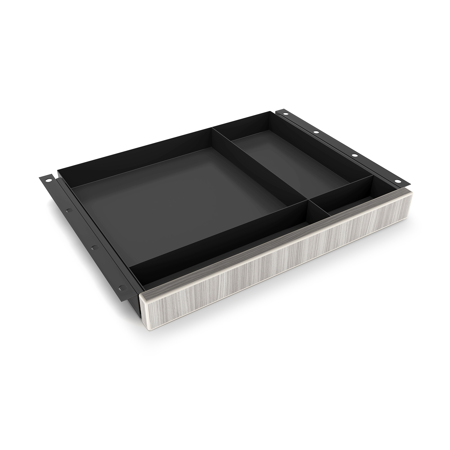 The i5 Industries Rayne Pencil Drawer provides under desk storage with beautiful wood options that match all Rayne rectangular desks, office desk shells, credenzas, L-shaped desks, U-shaped desks, and reception desks. Built for under desk storage, this slide out organizer features four compartments that act as separate storage spaces. Guided on smooth tracks, it fully extends so you can easily reach all of your stored items. Attachment is easy with our under-mount system.