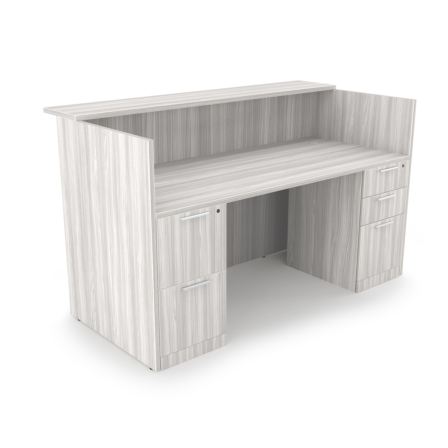 The i5 Industries Rayne Reception Desk can be used standalone or built out into elaborate desk configurations. 30″ depth and 71″ width of usable desk space. Features a rectangular transaction counter that is 14″ deep and 71″ wide. There are a combined total of five drawers that are soft close with 6″ L-shaped handles secured by removable locking cores for easy rekeying. Uneven floors are no longer a problem with adjustable levelers up to 1″. Durable yet stylish 3mm edge banding makes this desk built to last. Matching components are available so you can build your desk your way.